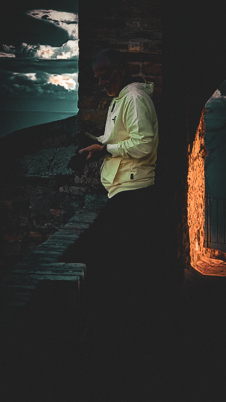 Seduto, invisibile,